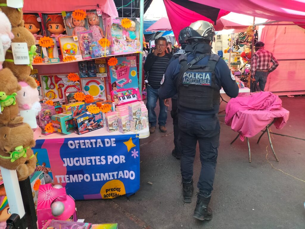 El despliegue de vigilancia cubre mercados, centros comerciales, tianguis, sucursales bancarias y cajeros automáticos.