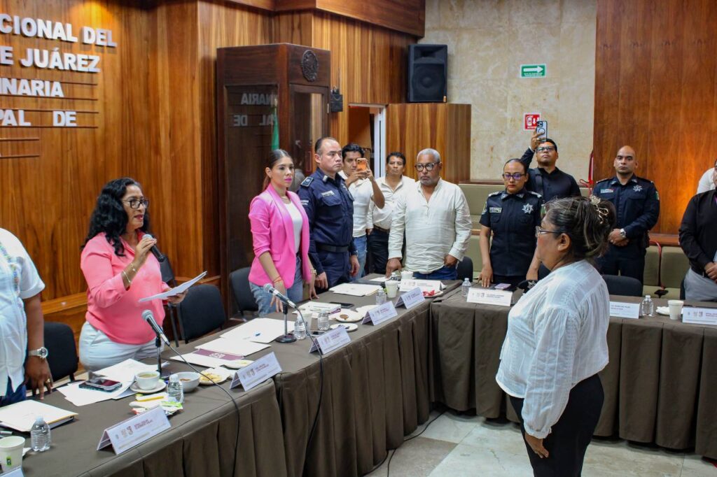 En la sala de Cabildo Juan R. Escudero, la alcaldesa tomó protesta a María del Rocío Sánchez Mora, encargada de despacho del Secretariado Ejecutivo del Consejo de Seguridad Pública, quien asumió funciones como secretaria ejecutiva de los trabajos del organismo.