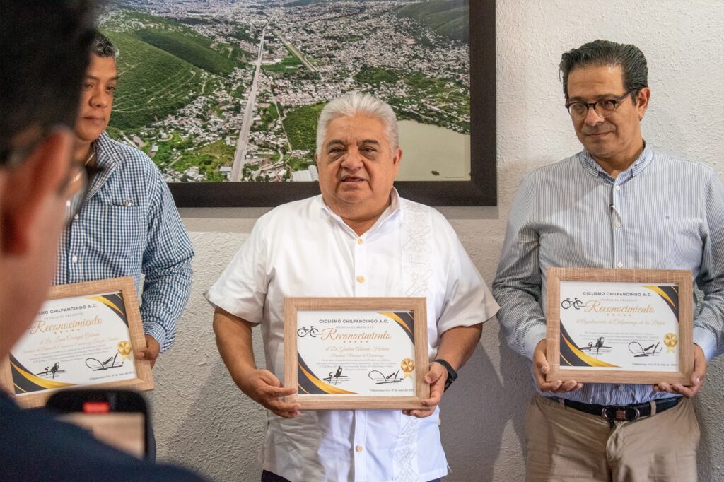 Chilpancingo, Gro., a 7 de julio de 2025.- El presidente municipal Dr. Gustavo Alarcón Herrera recibió un reconocimiento por parte de la Asociación Civil Ciclismo Chilpancingo, en agradecimiento por el respaldo brindado a la promoción del deporte en la capital del estado, así como por su apoyo decidido para la realización de la rodada ciclista “Sergio Quinto”, efectuada el pasado 5 de mayo con motivo del quinto aniversario de la organización.