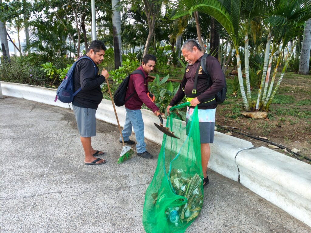 La Promotora de Playas Acapulco realizó la mañana de este jueves trabajos de limpieza a lo largo de la bahía de Acapulco, así como en accesos a playas y diversos espacios públicos, con el objetivo de mantener áreas limpias y en óptimas condiciones para el uso y disfrute de residentes y visitantes.
