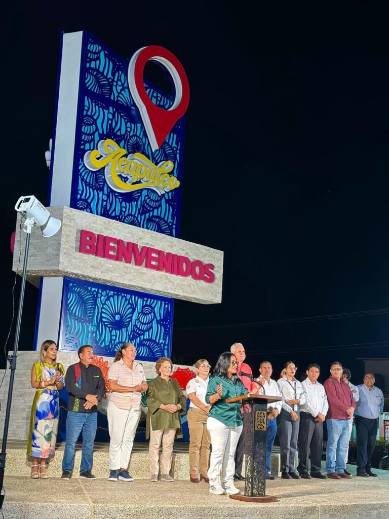 A su vez, el director de Obras Públicas, Vladimir Hernández Alemán, explicó que el diseño del tótem integra elementos simbólicos que representan la esencia de Acapulco. Detalló que el pin rojo identifica al puerto en el mapa mundial como un punto de encuentro de calidez y resiliencia; la base de caracoles alude a la riqueza del océano y su profundidad; mientras que la estructura, de ocho metros de altura, utiliza tonos azul profundo en referencia al mar, y la palabra Acapulco en amarillo cálido evoca los atardeceres que distinguen al destino.