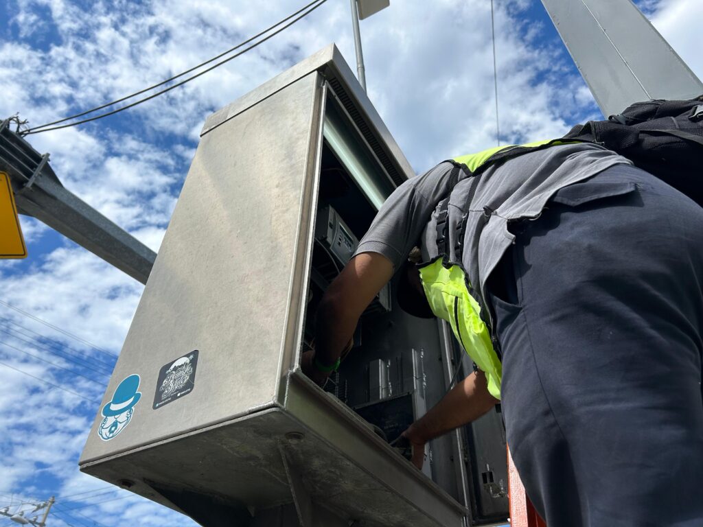 Acapulco, Gro., 14 de enero de 2025.- Con la finalidad de mejorar la movilidad, el Gobierno Municipal de Acapulco repara los semáforos ubicados en distintos puntos de la ciudad.