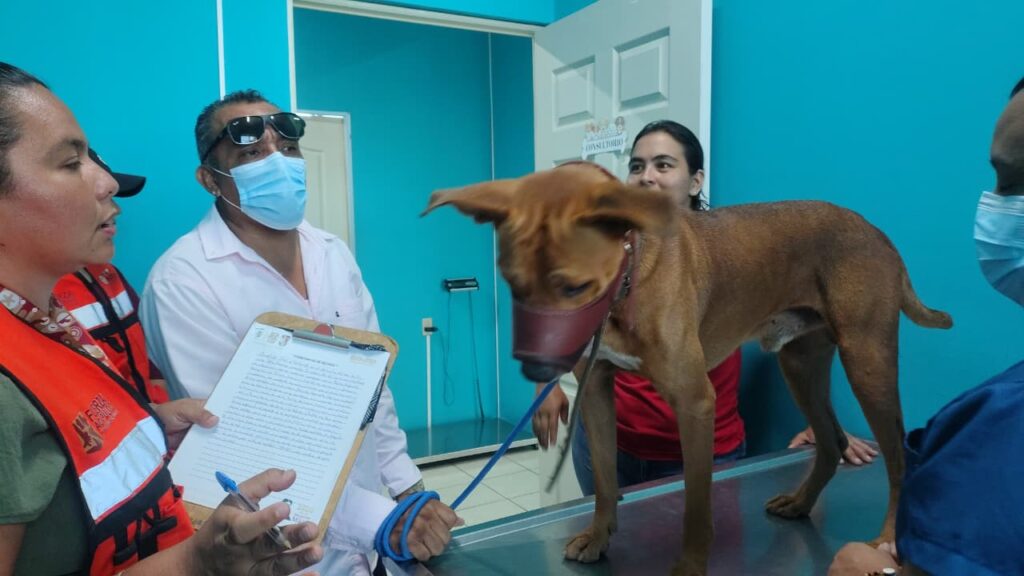 Durante la inspección se confirmó que uno de los machos presentaba una herida infectada y ya no contaba con signos vitales. El segundo, identificado como “Rocky”, de entre cuatro y cinco años de edad, fue trasladado a una clínica veterinaria para su valoración y atención médica especializada.