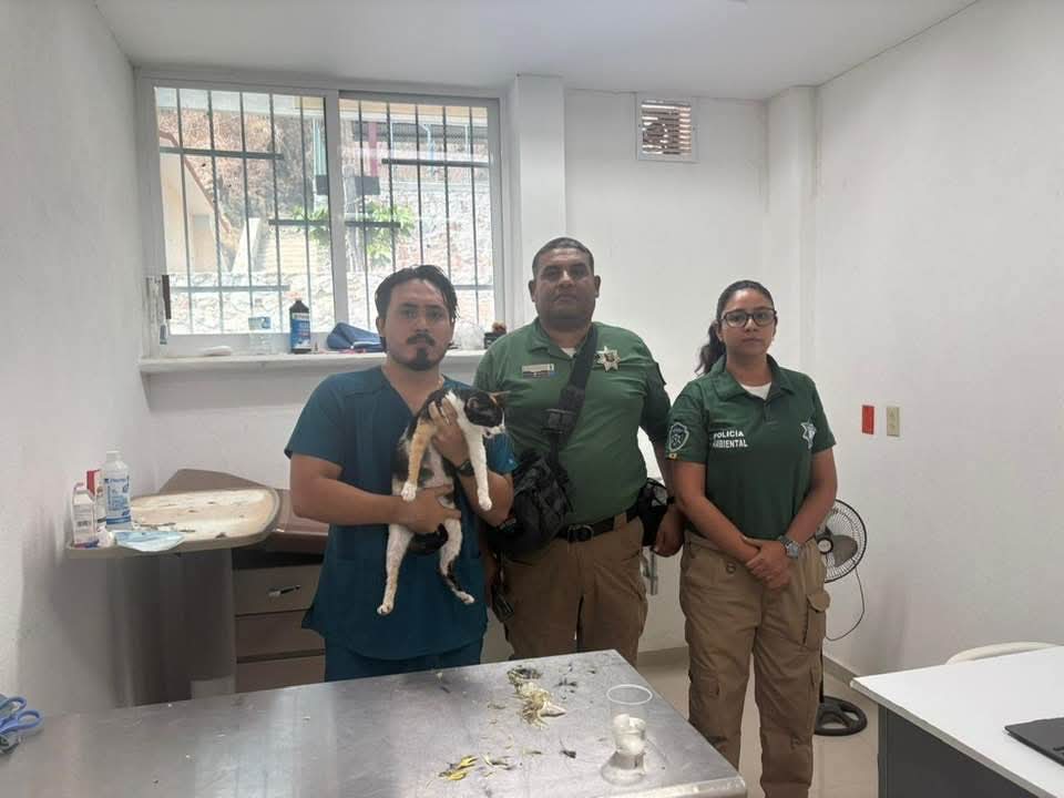 El titular de Ecología y Protección al Medio Ambiente, Miguel Balleza García, informó que la intervención derivó de diversas alertas vecinales que señalaron condiciones de descuido en las que se encontraba un gato doméstico. Personal especializado acudió al sitio y constató la presencia del felino con restos de pintura en distintas partes del cuerpo, por lo que fue trasladado al Centro de Bienestar Animal, donde recibió valoración médica inmediata, en compañía de su tutora.