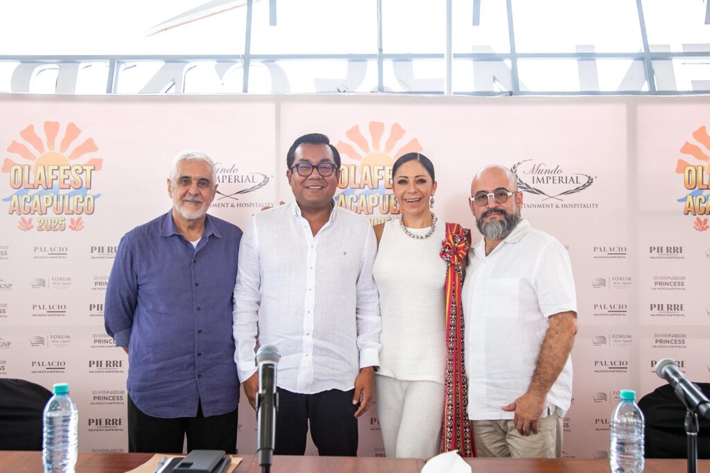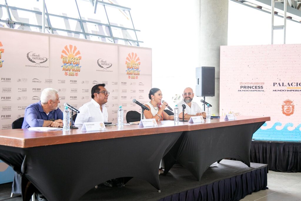 Acapulco, Gro., 8 de julio de 2025.- Como parte de la estrategia impulsada por la gobernadora, Evelyn Salgado Pineda, de mantener una agenda que permita enriquecer la experiencia de turistas, el gobierno de Guerrero, en coordinación con Grupo Mundo Imperial, presentó la cartelera del Ola Fest Acapulco 2025, con eventos artísticos, culturales y deportivos para garantizar una temporada vacacional positiva para visitantes y residentes.