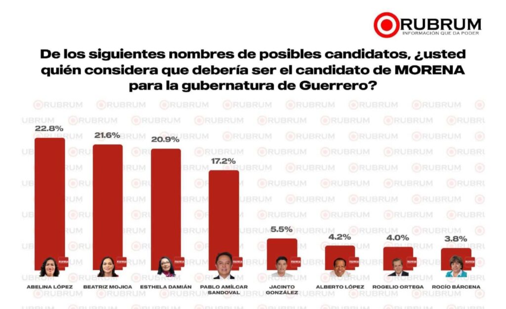 Abelina López Rodríguez se perfila como la figura central en Guerrero rumbo a 2027, con 22.8% de las preferencias en la interna de Morena, por encima de Beatriz Mojica y Esthela Damián; su trayectoria y visibilidad la colocan como protagonista que marca el ritmo de la contienda.