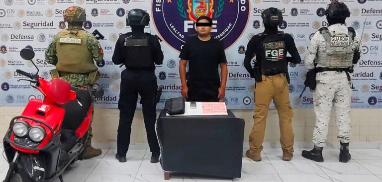 Fiscalía General del Estado de Guerrero asegura a un hombre con 50 dosis de cristal