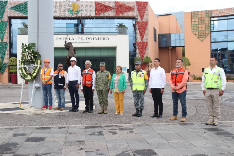 Ceremonia de izamiento de bandera y actividades de protección civil honran la memoria y la solidaridad de la sociedad frente a los desastres naturales