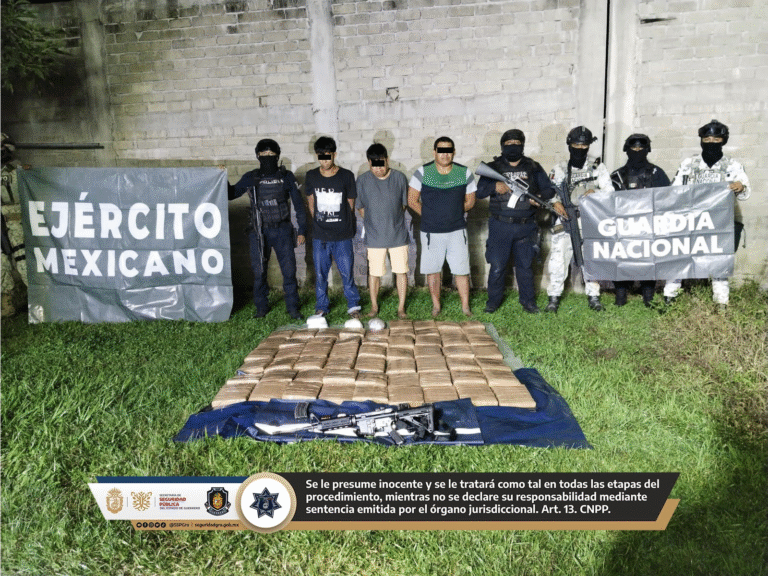 Operativos conjuntos de Policía Estatal, Ejército y Guardia Nacional permitieron el aseguramiento de armas y más de 40 kilos de presunta droga en la Costa Chica