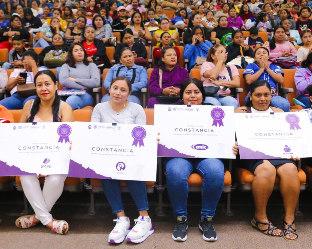 La entrega se realizó en la capital del estado, donde más de dos mil mujeres se dieron cita para recibir el reconocimiento a su esfuerzo y constancia al concluir procesos formativos que fortalecen sus capacidades académicas, personales y laborales.